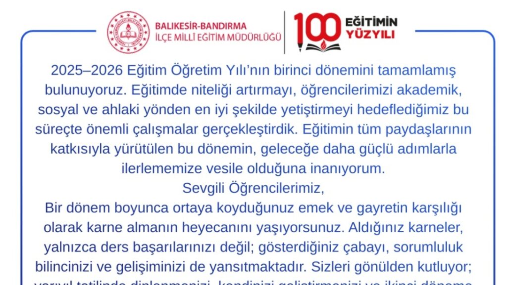 Havran İlçe Kaymakamı Sayın Muhammed EVLİCE, Havran Belediye Başkanı Sayın Emin ERSOY, Havran İlçe Millî Eğitim Müdürü Sayın Hüseyin AYDEMİR, birlikte bir eğitim-öğretim dönemi geçiren öğrencilerin karne sevinçlerine ortak oldular. Şehit Eyüp Karataş Ortaokulu’nda öğrencilerle bir araya gelerek gerçekleştirilen karne…