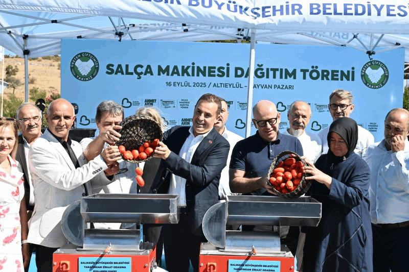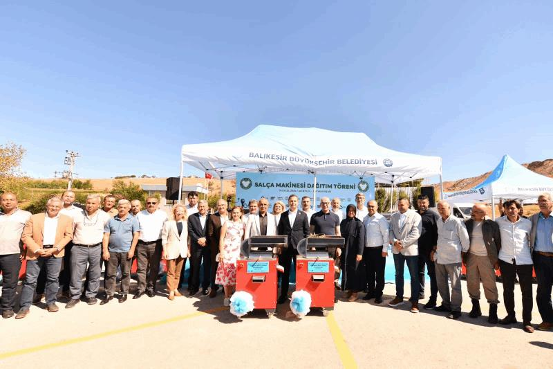 Tarımın başkenti Balıkesir’de çiftçilere destekler aralıksız sürüyor. Tarımda Balıkesir modeliyle tarım arazilerinin işlenmesini ve çiftçinin alın terinin karşılığını almasını sağlayan destek programlarını hayata geçiren Balıkesir Büyükşehir Belediye Başkanı Ahmet Akın, çiftçilerin elini güçlendirmek için 16 ziraat odasına toplam 200 adet salça makinesi dağıttı. “Çiftçi Destek Programı” kapsamında, üreticilerin iş gücünü hafifletmek ve kaliteli ürünü daha kolay üretebilmelerine katkı sağlamak amacıyla düzenlenen “Salça Dağıtım Töreni”ne Balıkesir Büyükşehir Belediye Başkanı Ahmet Akın’ın yanı sıra CHP Balıkesir Milletvekili Serkan Sarı, Altıeylül Belediye Başkan Yardımcısı Ertan Kayatepe, Balıkesir Ziraat Odası Başkanı Rahmi Demirbay, daire başkanları, ilçe ziraat odaları başkanları, muhtarlar, üreticiler ve vatandaşlar katıldı.