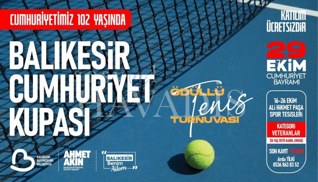 Balıkesir Büyükşehir Belediye Başkanı Ahmet Akın’ın, spora ve sporculara sağladığı katkılar aralıksız devam ediyor. 29 Ekim Cumhuriyet Bayramı Haftası Etkinlikleri kapsamında Balıkesir Cumhuriyet Kupası Ödüllü Tenis Turnuvası heyecanı yaşanacak. Turnuvaya 18 yaş üstü kadın ve erkek sporcular başvuru yapabilecek. Balıkesir…
