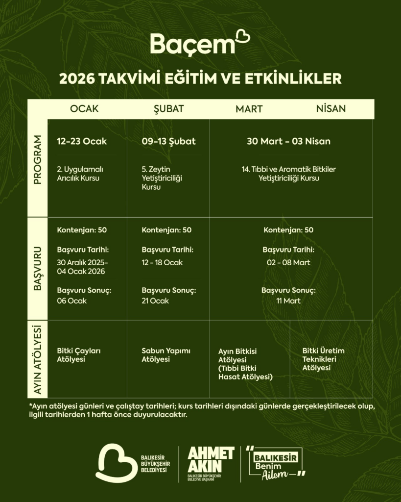 🌿 BAÇEM 2026 EĞİTİM TAKVİMİ YAYINDA! 🧿🍀🌾