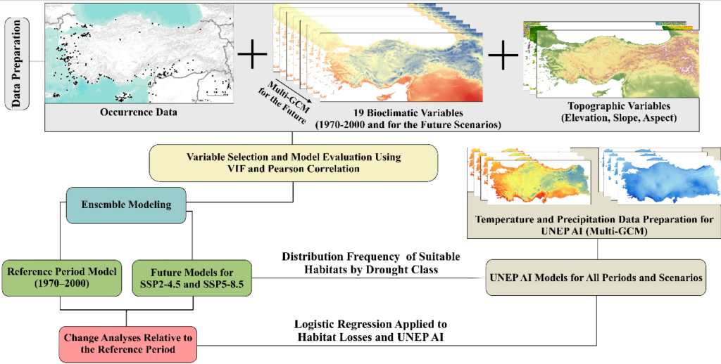 Balıkesir Üniversitesi (BAÜN) Fen Edebiyat Fakültesi Coğrafya Bölümü akademisyenlerinden Prof. Dr. İsa Cürebal’ın da yer aldığı akademisyenlerin çalışması, Türkiye’de iklim değişikliğinin zeytin (Olea europaea L.)potansiyel dağılımı üzerindeki etkilerini inceleyerek, tarım politikaları açısından kritik bölgelerdeki uygun alan değişimlerini ortaya koydu.